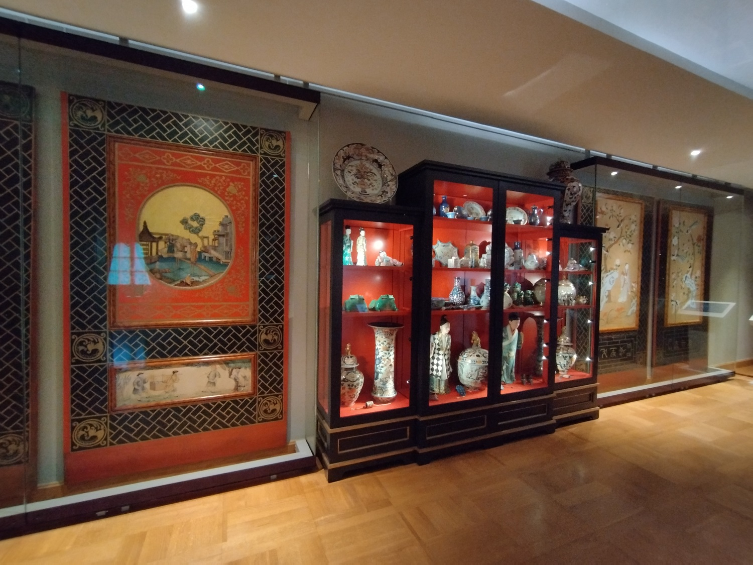 Od początku 2023 roku na ekspozycji przy Pokojach Chińskich i Myśliwskich można oglądać wyjątkowe zabytki - drewniane panele z dalekowschodnimi malowidłami na jedwabiu. Ozdabiały one niegdyś ściany jednego z Pokoi Chińskich urządzonych przez Stanisława Kostkę Potockiego na piętrze pałacu wilanowskiego. Kolejni właściciele rezydencji zmieniali jego wystrój zachowując przy tym „chiński” charakter wnętrza. W latach 50. XX wieku pod orientalnymi tapetami odkryto barokowe malowidła. Wówczas zdecydowano o przywróceniu późnobarokowego wystroju „chińskich” pomieszczeń. Ich wyposażenie zostało udokumentowane, zdemontowane i zabezpieczone w magazynach muzeum.