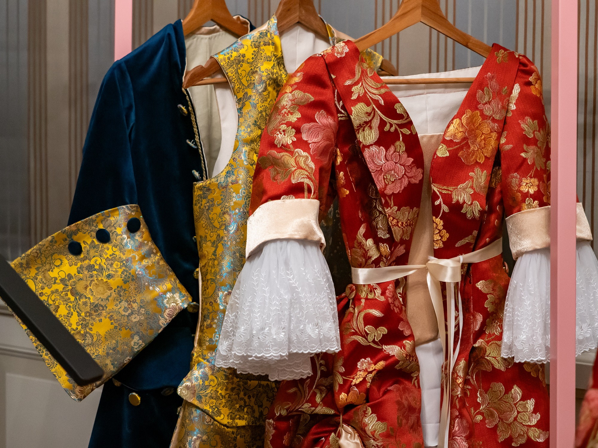 Można tu przymierzyć rekonstrukcje dawnych strojów – w tym elegancką suknię typu mantua i wytworny szustokor – oraz założyć biżuterię inspirowaną epoką i obrazami z wystawy. Przygotowaliśmy także materiały edukacyjne, zadania oraz możliwość samodzielnego tworzenia biżuterii z klocków. A na pamiątkę królewskiej przemiany można zrobić sobie zdjęcie w stylizowanej ramie – w weekendy aparatem instax, a w tygodniu selfie w lustrze z peruką lub kryzą!