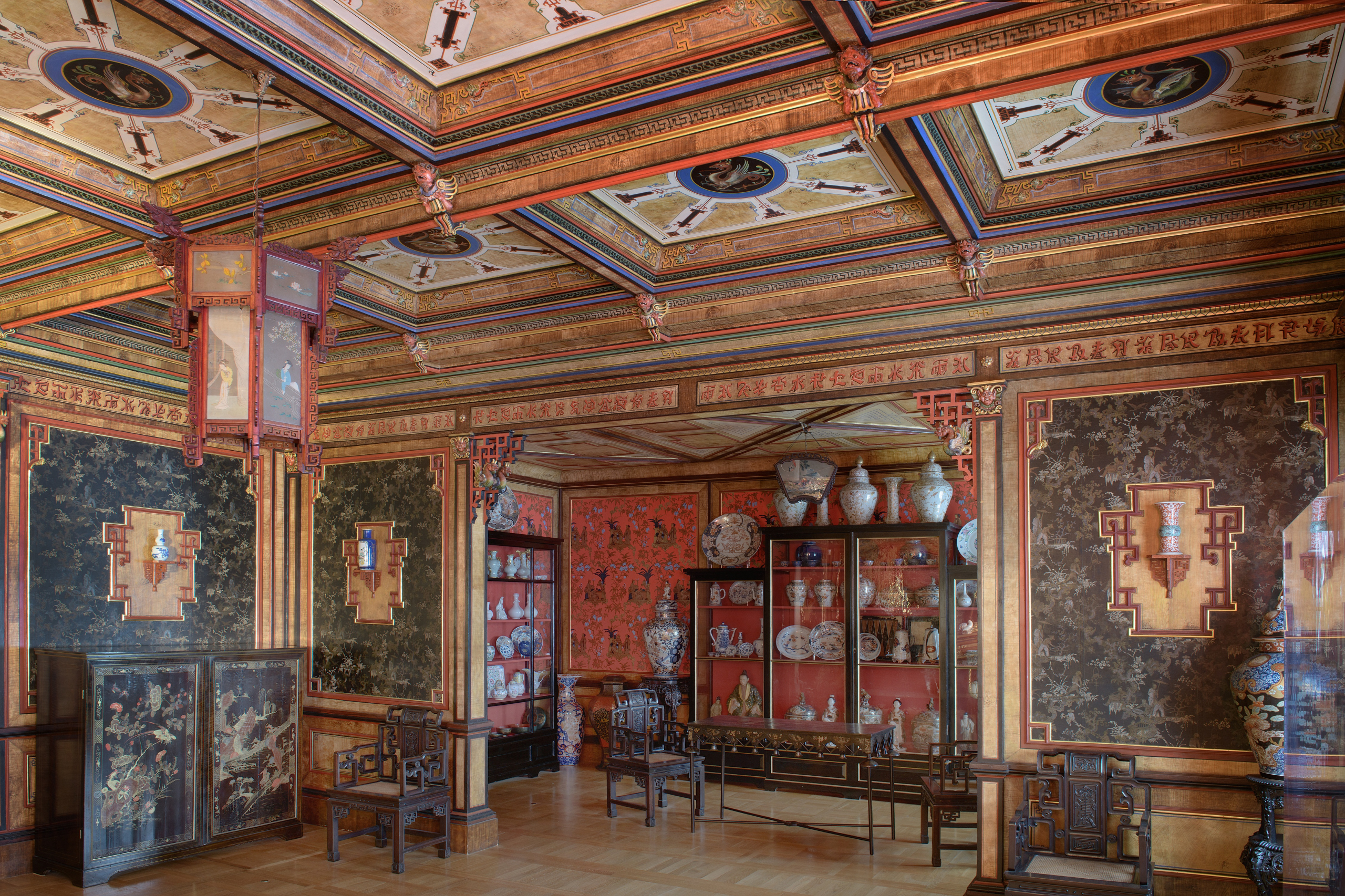 Już w najstarszym inwentarzu opisującym wyposażenie pałacu wilanowskiego, spisanym po śmierci króla Jana III w 1696 roku, znajdujemy opis Gabinetu Chińskiego w Apartamencie Króla Jegomości. Dalekowschodnia porcelana i wyroby z laki oraz przedmioty produkowane w Europie na wzór chińskich i japońskich, czy dekorowane „w stylu chińskim” zdobiły wnętrza pałacu w Wilanowie od początku jego istnienia. Kolejni gospodarze – August II Mocny, Izabela z Czartoryskich Lubomirska, Stanisław Kostka Potocki – urządzali gabinety lub apartamenty z dekoracją inspirowaną, bądź wzorowaną na dalekowschodnich motywach. Na przełomie XVIII i XIX wieku Stanisław Kostka Potocki, tworząc w Wilanowie jedno z pierwszych polskich muzeów, zaaranżował niezwykły Apartament Chiński, w którym prezentowana była jego kolekcja hińszczyzny – jak to zapisywano w ówczesnym inwentarzu. Apartament ten ozdobiony był chińskimi obrazami, drzeworytami i tapetami, urządzony był natomiast meblami stworzonymi w Europie stylizowanymi na chińskie. Stworzony przez Potockiego zbiór sztuki dalekowschodniej był kolekcją miłośnika i badacza sztuki, gromadził różnorodne przedmioty i wyroby. Podobnie jak w przypadku kolekcji malarstwa europejskiego S.K. Potockiego udostępnionej publiczności w Muzeum Wilanowskim prezentującej dzieła z kręgu najwybitniejszych mistrzów, zbiór dalekowschodni miał jak najpełniej ukazywać dokonania i charakterystyczne cechy sztuki Chin i Japonii. Kolekcja ta zachowała się, w sporej części, w zbiorach Muzeum do dziś. Dawny Apartament Chiński Potockiego, mieszczący się kiedyś na pierwszym piętrze korpusu głównego pałacu – nie istnieje.