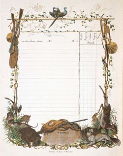 Zaświadczenie z polowania, Polska, Warszawa, lit. nieznany, wyk. M. Fajans, ok. 1850, chromolitografia na papierze