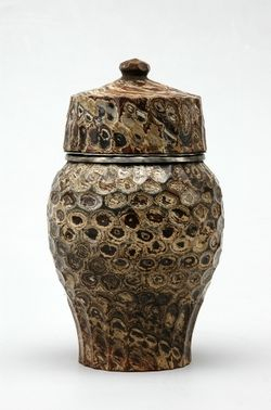 Puszka na herbatę z wielobarwnych glinek, Niemcy, Miśnia, ok. 1711, kamionka Johanna Friedricha Böttgera z wielobarwnej masy, szlifowana, polerowana; metal