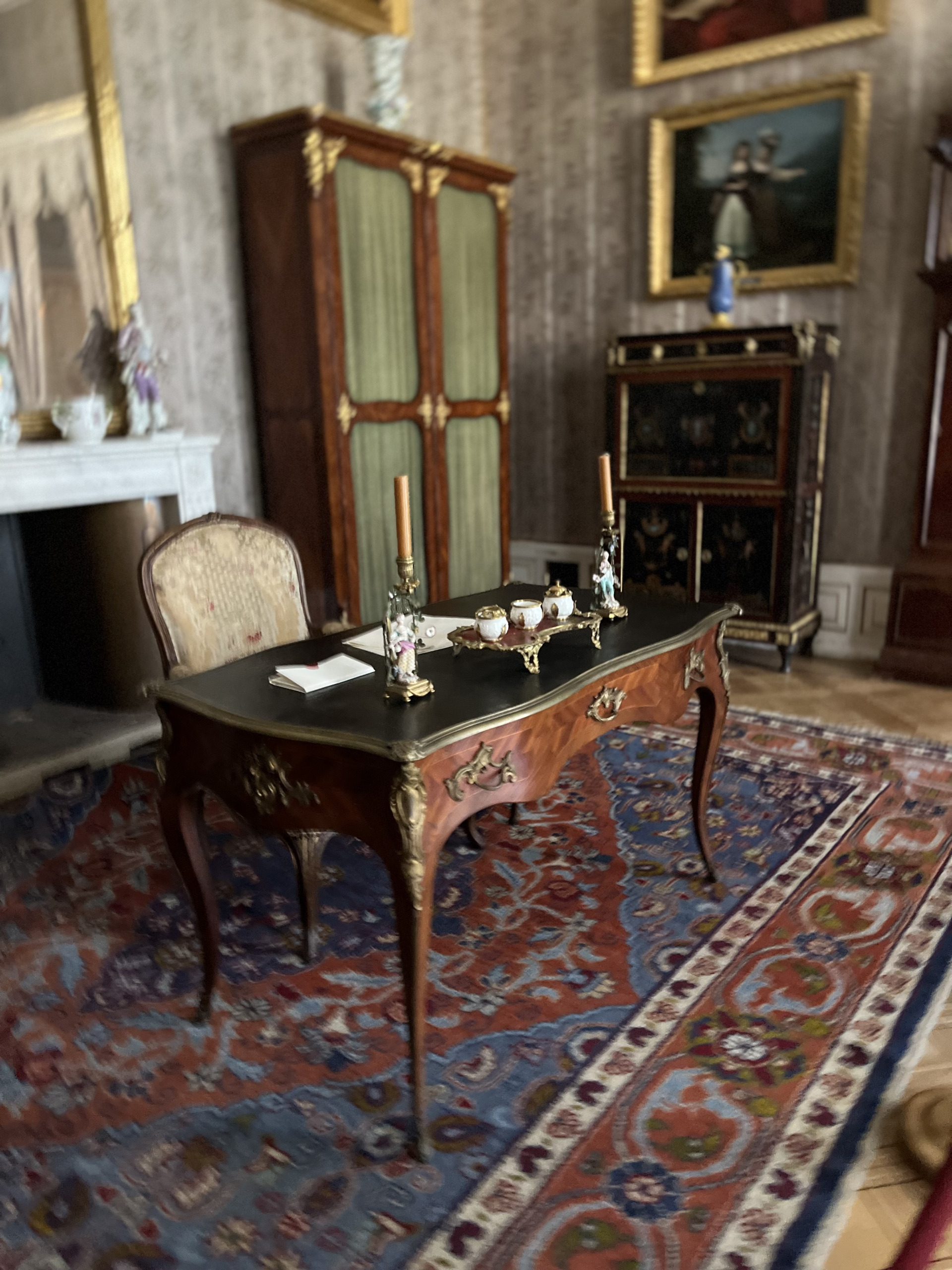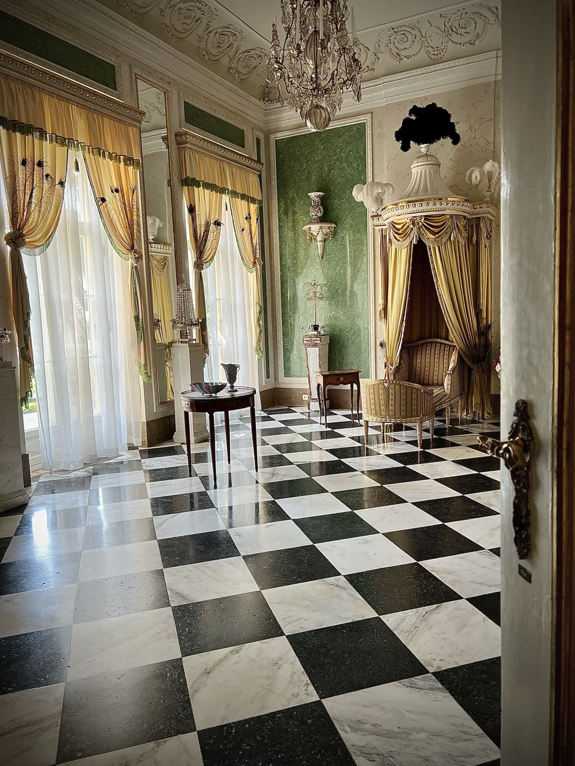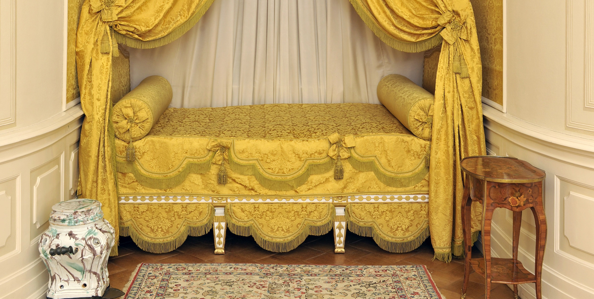 The name of the room comes from the characteristic furniture, the Princess Marshal's bed and a set of armchairs. In this room, visitors can see Meissen porcelain chocolate drinking utensils, a pot for storing tea, and biscuit porcelain figurines.