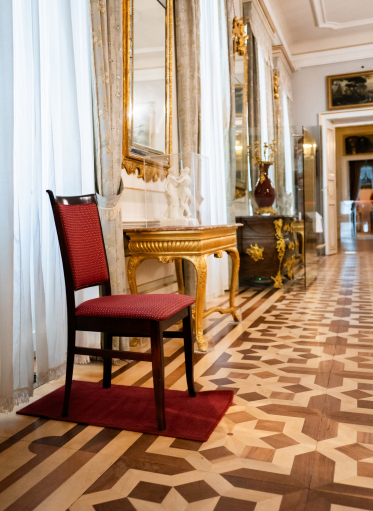 • The ground floor of the Palace and the park are accessible to people in wheelchairs. The Museum has foldable ramps to facilitate entry and exit from the Palace and movement around the ground floor of the Palace. IMPORTANT! Due to the historical nature of the place, not all thresholds have been removed yet, and the length of the ramps that we can use in the current conditions allows us to achieve a slope angle at the entrance and exit of 24%. Therefore, people in wheelchairs are asked to come to the Museum with an accompanying person.