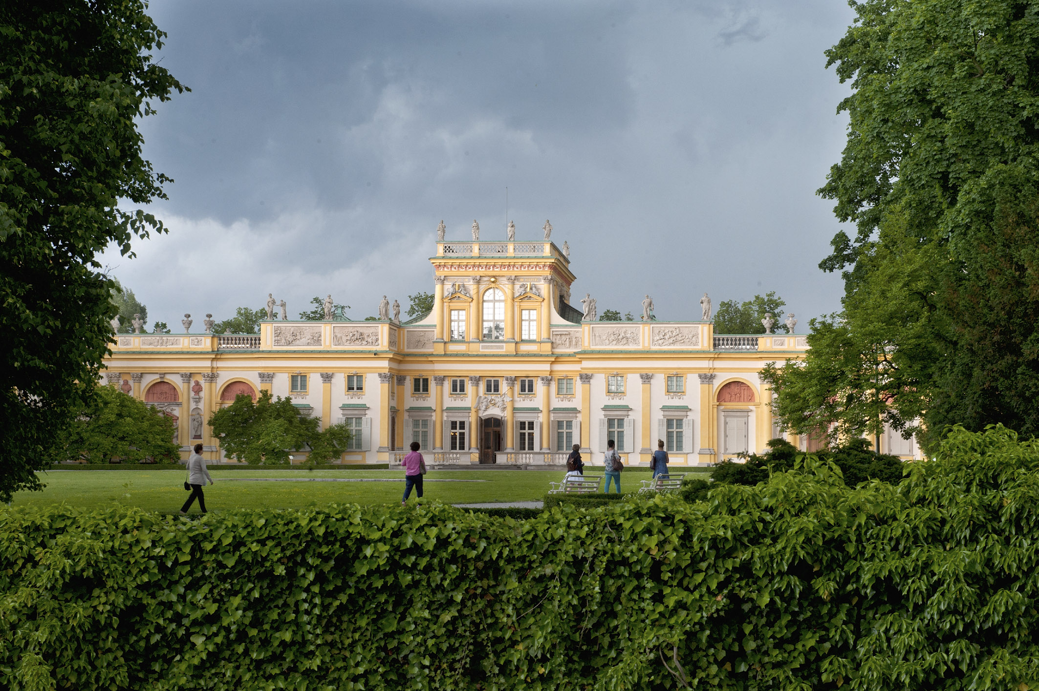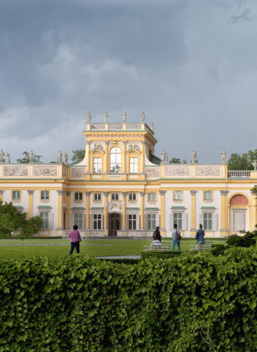 • The most convenient way to get to the Palace is from the WILANÓW bus terminus: to get to the Museum, cross Powsińska street. The most convenient crossing are the lanes with traffic lights located next to the McDonald’s outlet. We cross the street, reach the fence, then turn right and continue walking straight along the pavement. Along the way, on the left we pass a number of buildings and a church, behind which the Museum area begins.