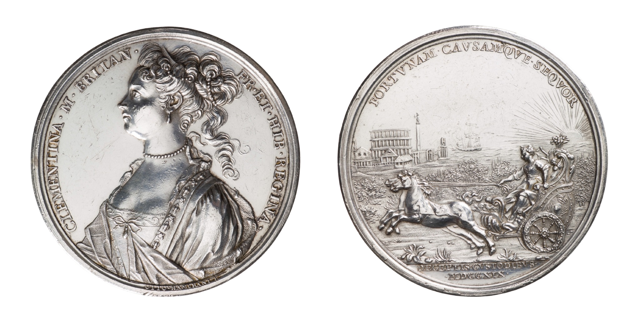 Maria Clementina (Oława, 17 July 1701 – Rome, 18 January 1735), daughter of Prince Jakub and Jadwiga Elisabetta von Pfalz-Neuburg, goddaughter of Pope Clement XI and betrothed to James Stuart, son of the deposed King James II of England, after being kidnapped and imprisoned in Innsbruck for six months, she regained her freedom and married by proxy in Bologna on 9 May 1719[1], immediately afterwards leaving for Rome where she was awaited by the Pope. Clementina arrived in the Eternal City on 15 May[2] and remained there until her death under the protection of Clement XI and his successors.