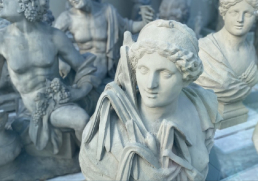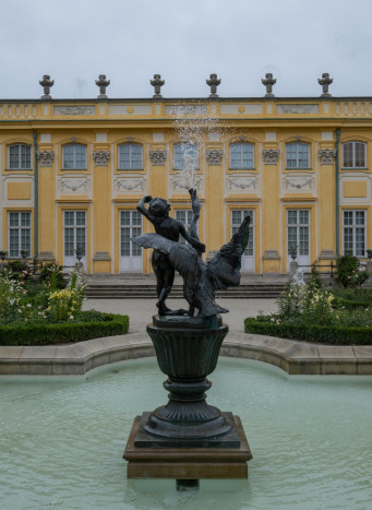 The garden is decorated with numerous sandstone sculptures depicting mythological heroes. Worth a look are the particularly valuable Rococo figures by Johann Chrisostomus Redler, situated on the Upper Terrace balustrade. These figures depict putti symbolising the four stages of love (Apprehension, Kiss, Indifference, and Quarrel), exotic sphinxes with baskets of flowers and allegories of the four seasons.