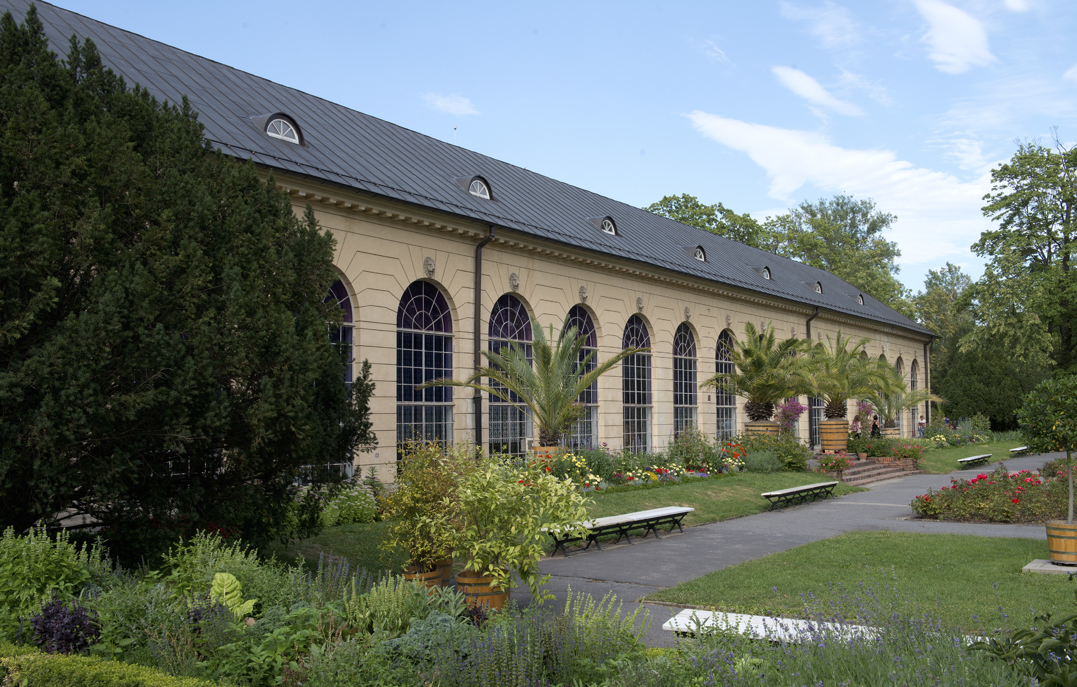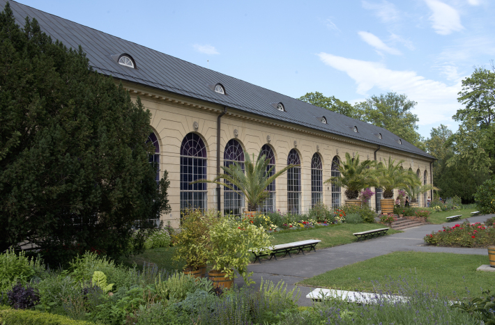 This is the youngest part of Wilanów. During the reign of King Jan III, there was a wooden church and a cemetery here. The quarters adjacent to the Orangery were planted with red roses and hostas. The space around was decorated with exotic plants in pots, which are brought here every summer, such as Canary date trees, Howea forsteriana palms, bananas, and figs.