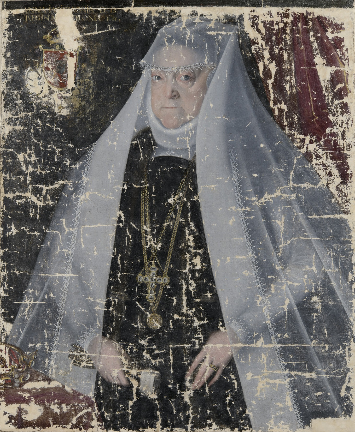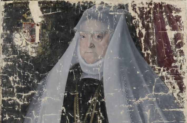 Twarz królowej zachowała się bardzo dobrze, z wyjątkiem drobnych wykruszeń malatury. Po oczyszczeniu odzyskała swoje właściwe barwy. Na białym welonie oraz tle po lewej stronie usunięto resztki dawnych przemalowań, pozostawionych podczas konserwacji z 1946 roku.