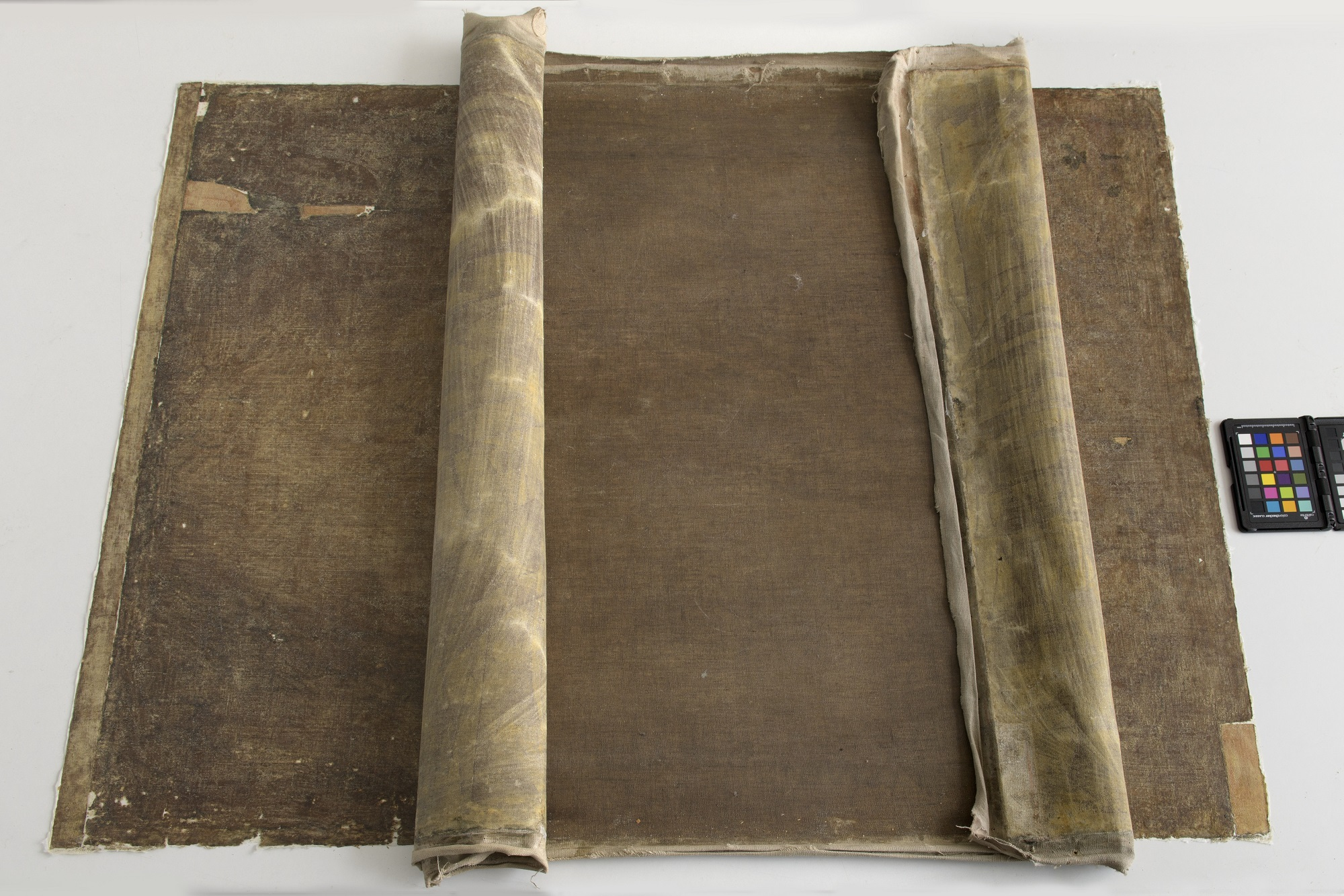Konieczne było usunięcie starego płótna dublażowego ze względu na powstałe deformacje oryginalnego podobrazia. Odsłoniły się wówczas różne uszkodzenia płótna oraz niewystarczające naprawy wykonane wcześniej. Analiza tych zniszczeń wskazuje, że obraz najprawdopodobniej był kiedyś zdjęty z ram, zwinięty i spłaszczony. Po zdjęciu dublażu w lewym dolnym rogu odwrocia odkryto czarny, nieznany wcześniej motyw, który może być znakiem autora przygotowania podobrazia.