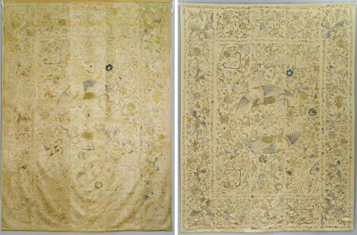 W Inwentarzu Wilanowskim z 1696 roku spisano elementy wyposażenia łoża z Sypialni Królowej Jej Mości w tym „kołdrę białą atłasu chynskiego, sokami iluminowaną”. Być może  jest to ta sama tkanina, która obecnie  znajduje się w wilanowskich zbiorach?