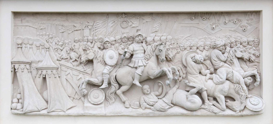 Poemat otwiera opis pałacu bogini Sławy. Zdobiące go wizerunki opowiadają historię wybitnych władców, polityków i wodzów od starożytności po czasy współczesne autorowi. Ich opisy są przeważnie krótkie, kilkuwersowe, wskazujące najważniejsze dokonania bądź cechę postaci. Wykorzystanie starożytnych jako tła pochwał bohatera panegiryku było typowym zabiegiem w tego rodzaju piśmiennictwie[71]. Przegląd wybitnych mężów ułożono w dwa ciągi – pierwszy obejmuje historię Europy, drugi historię Polski. W opowieści o chwale minionych wieków podkreślane są osiągnięcia w zwalczaniu Półksiężyca, np. podbój Ziemi Świętej. Od tego rodzaju osiągnięć rozpoczyna się opis wybitnych Polaków: