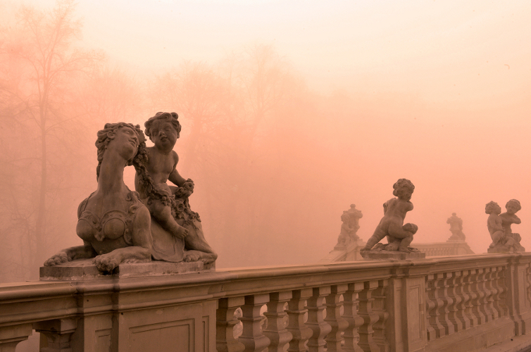 Putto ze sfinksem, rzeźba Redlera z balustrady górnej ogrodu w Wilanowie, fot. W. Holnicki