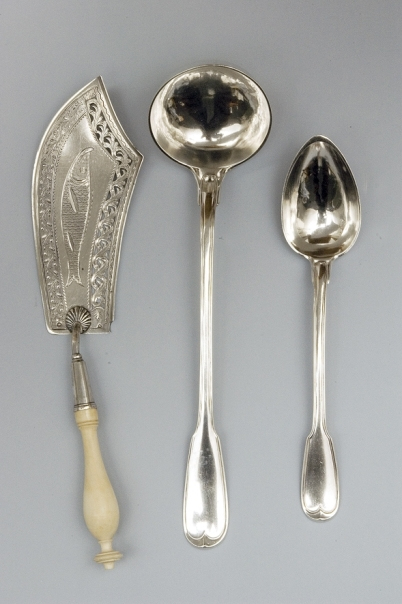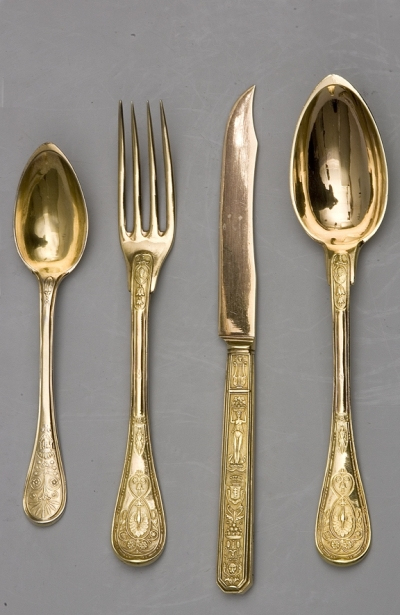 W połowie XVIII w. o posługiwaniu się sztućcami pisał Jędrzej Kitowicz: Nożów i widelców u wielu panów nie dawano po końcach stołu, trwał albowiem długo ... zwyczaj, iż dworzanie i towarzystwo, a nawet wielu z szlachty domatorów nosili za pasem nóż, jedni z widelcami, drudzy bez widelców, inni zaś prócz noża za pasem z widelcami miewali uwiązaną u pasa srebrną, rogową lub drewnianą... łyżkę w pokrowcu skórzanym,... przeto póki taka moda trwała, miano za dość pośrodek stołu opatrzyć łyżkami, nożami i widelcami, wiedząc, że ci którzy zasiędą końce stołu, będą mieli swoje noże i łyżki... Jeśli zaś, który nie zastał u stołu łyżki gospodarskiej i swojej nie miał, pożyczał jeden u drugiego, skoro ten, rzadkie zjadłszy, do gęstego się zabrał, albo zrobił sobie łyżkę z skórki chlebowej, zatknąwszy ją na nóż, co nie było poczytane za żadne prostactwo w wieku wykwintnością francuską nie bardzo jeszcze zarażonym, czyli nie wypolerowanym*****.