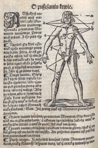 Wśród najczęściej pojawiających się w zachodnioeuropejskich traktatach medycznych argumentów za stosowaniem krwioupustów w trakcie dżumy, można znaleźć następujące. Po pierwsze, krwioupust redukuje przepełnienie ciała, osłabiając w ten sposób działanie szalejących w jego wnętrzu jadów powietrznych. Po drugie, skoro sama natura wywołuje u osób chorych na dżumę krwotoki z nosa czy dróg rodnych w celu oczyszczenia organizmu z jadu, to trzeba postępować według danego nam przez nią przykładu, dokonując dodatkowych krwioupustów w celu jeszcze szybszej ewakuacji trucizny morowej na zewnątrz ciała. Po trzecie, upust krwi przeciwdziała ważeniu się i osadzeni w trzewiach złych wilgotności, czyli powstawaniu zaparć. Po czwarte, wraz ze spuszczaną krwią z chorego organizmu wypływają także wszystkie trucizny i jady, które chcą się złączyć z mieszkającym w sercu duchem życiowym (spiritus vitalis). Przykładowo Andreas Langner, sławny lekarz niemiecki, w wydanym w 1575 r. traktaciku Proptuarium napisał: Kto zaraził się łożnym powietrzem, powinien natychmiast kazać otworzyć swoje żyły; postępując inaczej, skróci bowiem własny żywot [niczym samobójca]. Bo jeśli nie uczyni się tego w ciągu piętnastu godzin od zachorowania, będzie już za późno, żeby cokolwiek zrobić i żeby pomóc.