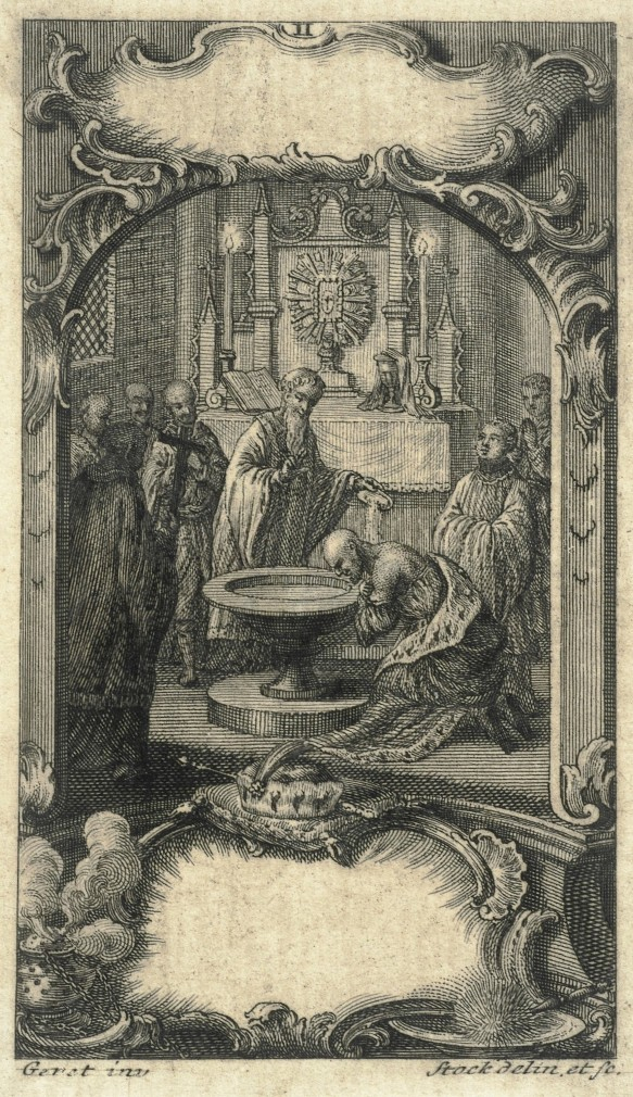 Chrzest Mieszka I, miedzioryt, autor wzoru: Geret, 1701–1800; Biblioteka Narodowa