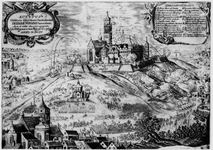 Obrona klasztoru jasnogórskiego w Częstochowie późną jesienią (listopad – grudzień) 1655 r., podczas pamiętnego „Potopu”, zajęła i zajmuje w świadomości narodu polskiego miejsce wyjątkowe. Niedługo potem przeor klasztoru paulinów i niezapomniany jego obrońca, ksiądz Augustyn Kordecki, napisał – z inspiracji dworu królewskiego, a szczególnie Ludwiki Marii - Nową Gigantomachię, wydaną w Krakowie w 1657 r. W dziele tym, będącym relacją z oblężenia klasztoru, autor twierdził, iż obrona Jasnej Góry stanowiła przełomowy moment w dziejach najazdu szwedzkiego na Polskę. I jakkolwiek wnikliwe studia polskich historyków (Olgierd Górka, Adam Kersten) dowiodły m.in., iż klasztor złożył (jak większość szlachty) akt poddańczy wobec Karola X Gustawa, że tenże klasztor nie był bynajmniej tylko „kurnikiem”, lecz nieźle przygotowaną do obrony twierdzą, i że wreszcie oblegające wojska generała Müllera nie były tak silne, jak utrzymywano później, to jednak Kordecki nie mylił się wiele. Warto może w tym miejscu zacytować fragment manifestu wojska zaciężnego, wydanego 2 marca 1656 r. w Zambrowie, w którym potępiono ostro agresorów szwedzkich za wiarołomstwo, łupiestwo i ucisk. Stwierdzono m.in., iż król szwedzki chciał zniszczyć „jedyną Polski pociechę, klasztor Najświętszej Panny Częstochowskiej, w którym chowany po całym chrześcijaństwie sławny obraz Bogu Rodzicy, ręką świętego Łukasza malowany (...) aby zgładzić cześć Świętej Panny Marii w kraju katolickim i lud polski tem łatwiej na luterską sektę swoją nawrócić”.