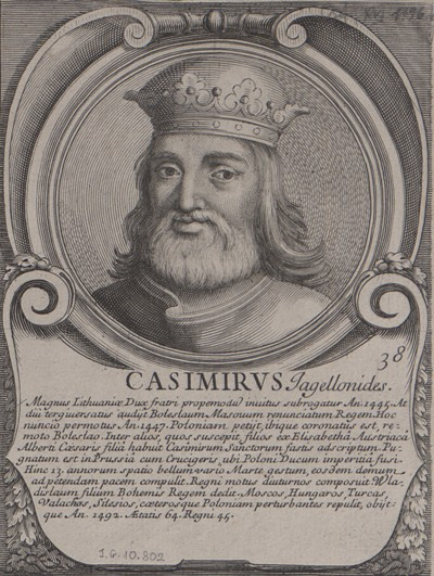 Benoit Farjat, Casimirus Jagiellonides, przed 1703, rycina z serii: Ducum Regnumque Polonorum series a Leko ad Stanislum Augustum hodie foeliciter regnantem deducta; Biblioteka Narodowa sygnatura: G.10802