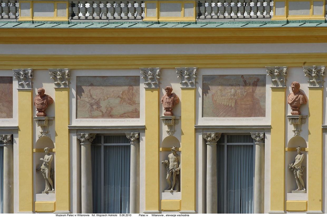 Freski ze scenami z Eneidy na elewacji ogrodowej pałacu w Wilanowie. Fot. W. Holnicki.