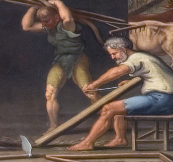 Portret mężczyzny w długim ubraniu, kapeluszu na głowie, z tobołkiem na plecach. Mężczyzna stoi na tle pejzażu. W lewym górnym rogu napis „z Pińczowa”. Jest to wizerunek Żyda według XIX-wiecznej ryciny Kajetana Wincentego Kielisińskiego z cyklu „Typy ludowe".