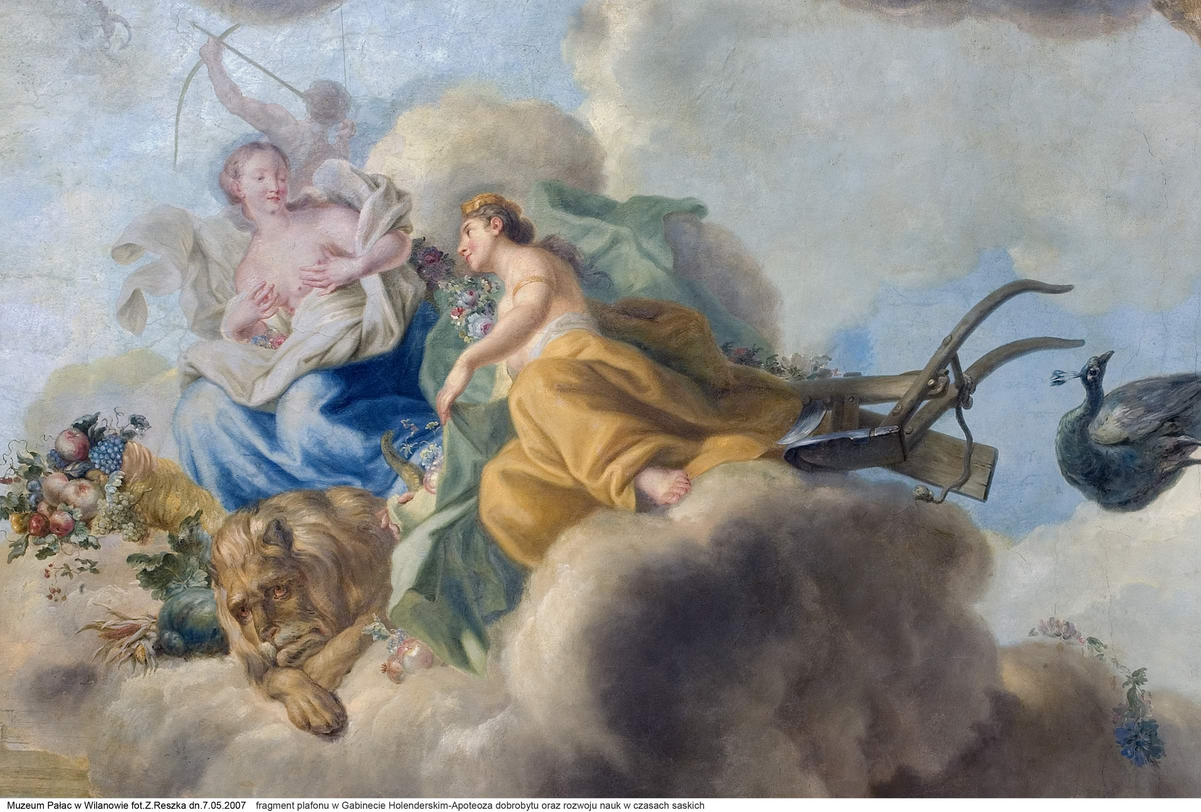 Dzieło przedstawiająca Apoteozę rozwoju nauki, sztuki i dobrobytu w czasach saskich.
