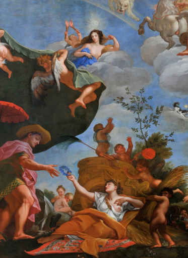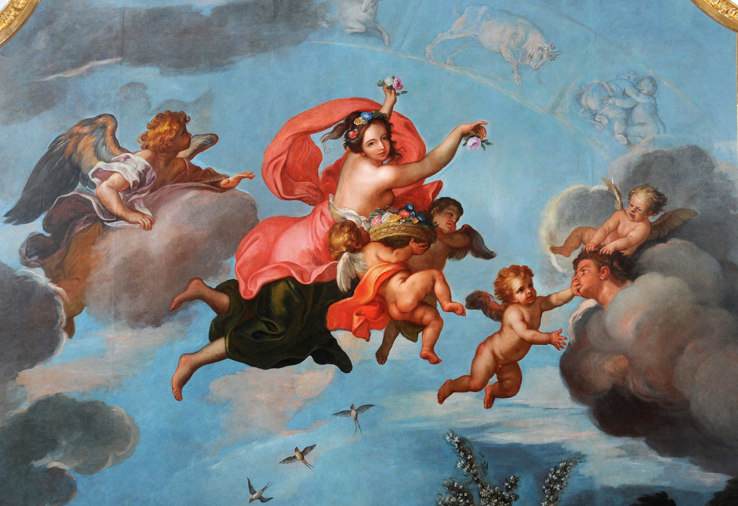 Wyobrażenie wiosny ozdobiło Sypialnię Królowej, sławiąc wdzięki i przymioty Marii Kazimiery.