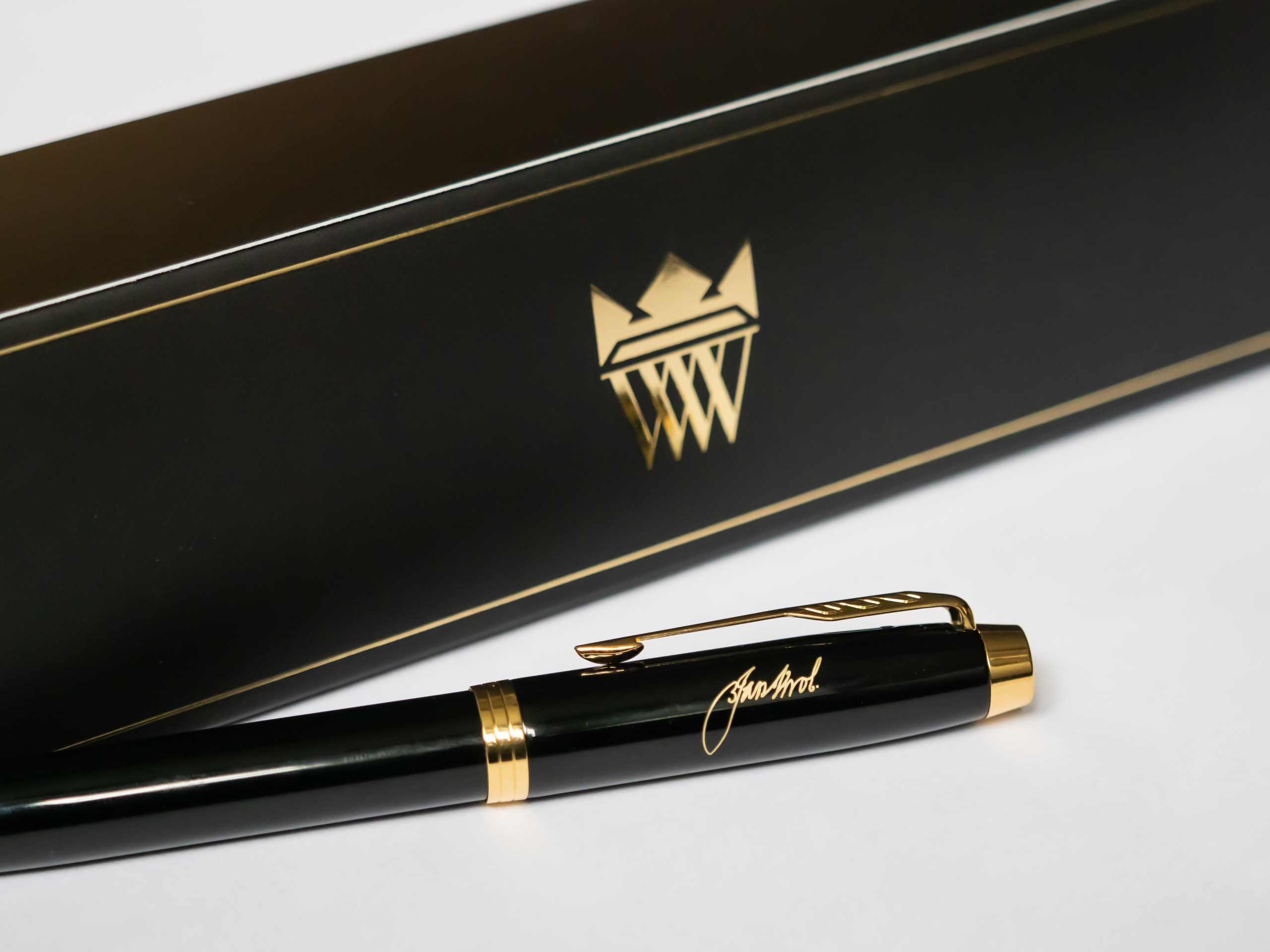 Najwyższej jakości pióro wieczne Parker IM z wygrawerowanym podpisem Króla Jana III. Stalówka została wykonana z trwałej stali nierdzewnej, całość dopracowana w każdym detalu, tak aby zapewnić wysoką jakość i wydajność podczas pisania.
