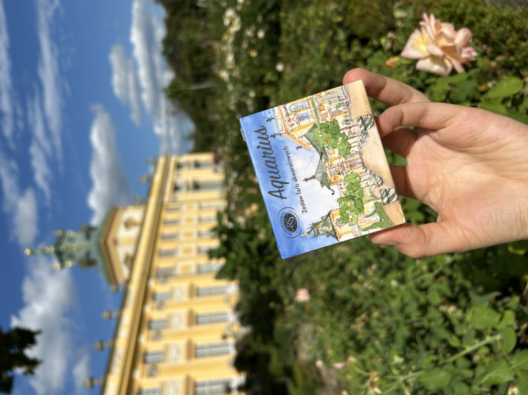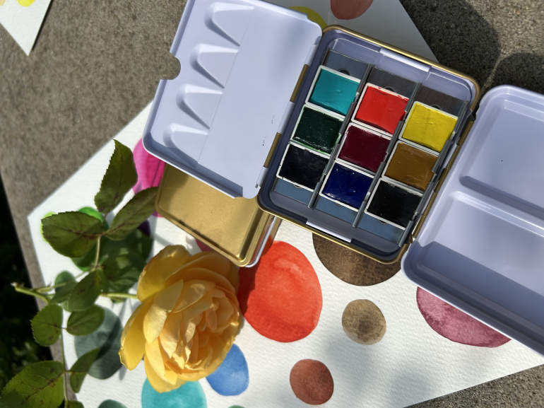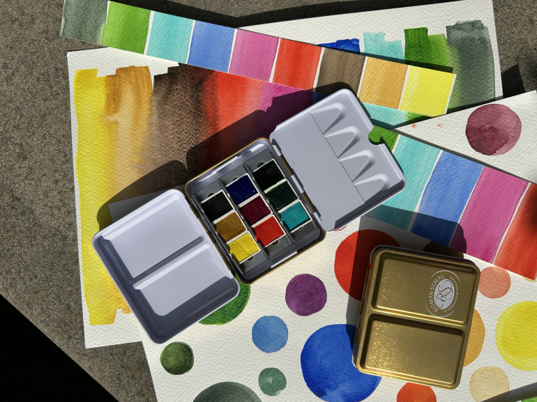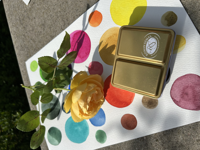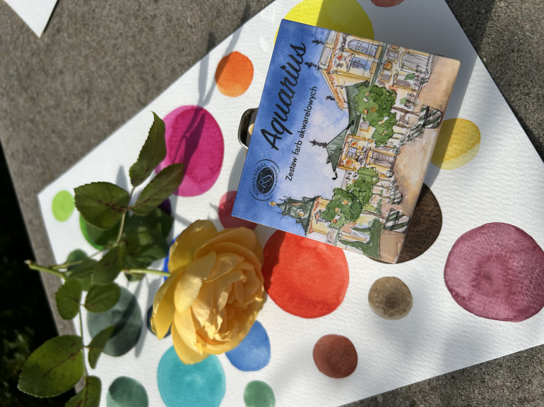 Mini zestaw farb akwarelowych Aquarius w półkostkach Mini Urban Sketchers - Roman Szmal - Gold, 9 kolorów